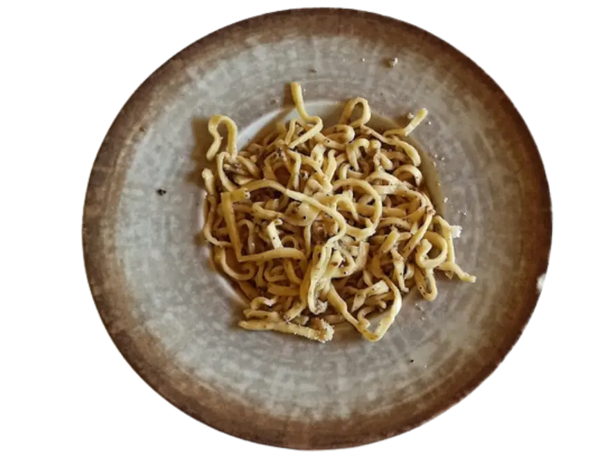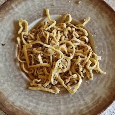 Strengozzi tirati a mano, ricotta, guanciale e tartufo